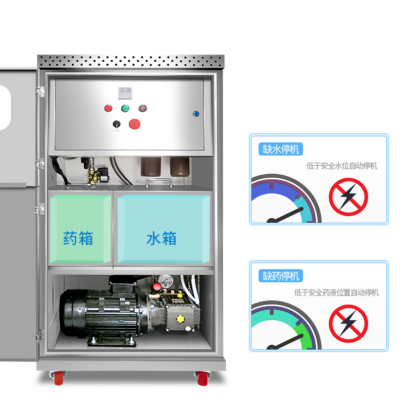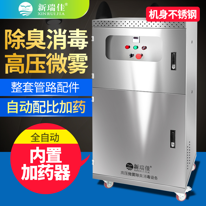 • 新瑞佳-霧化噴淋機(jī)組主要由霧化器、控制系統(tǒng)、藥液箱和高壓泵組成,在高壓泵的作用下,除臭液經(jīng)耐高壓管道系統(tǒng),通過(guò)霧化器形成1-10μm的極細(xì)除臭水霧噴出。除臭粒子充分